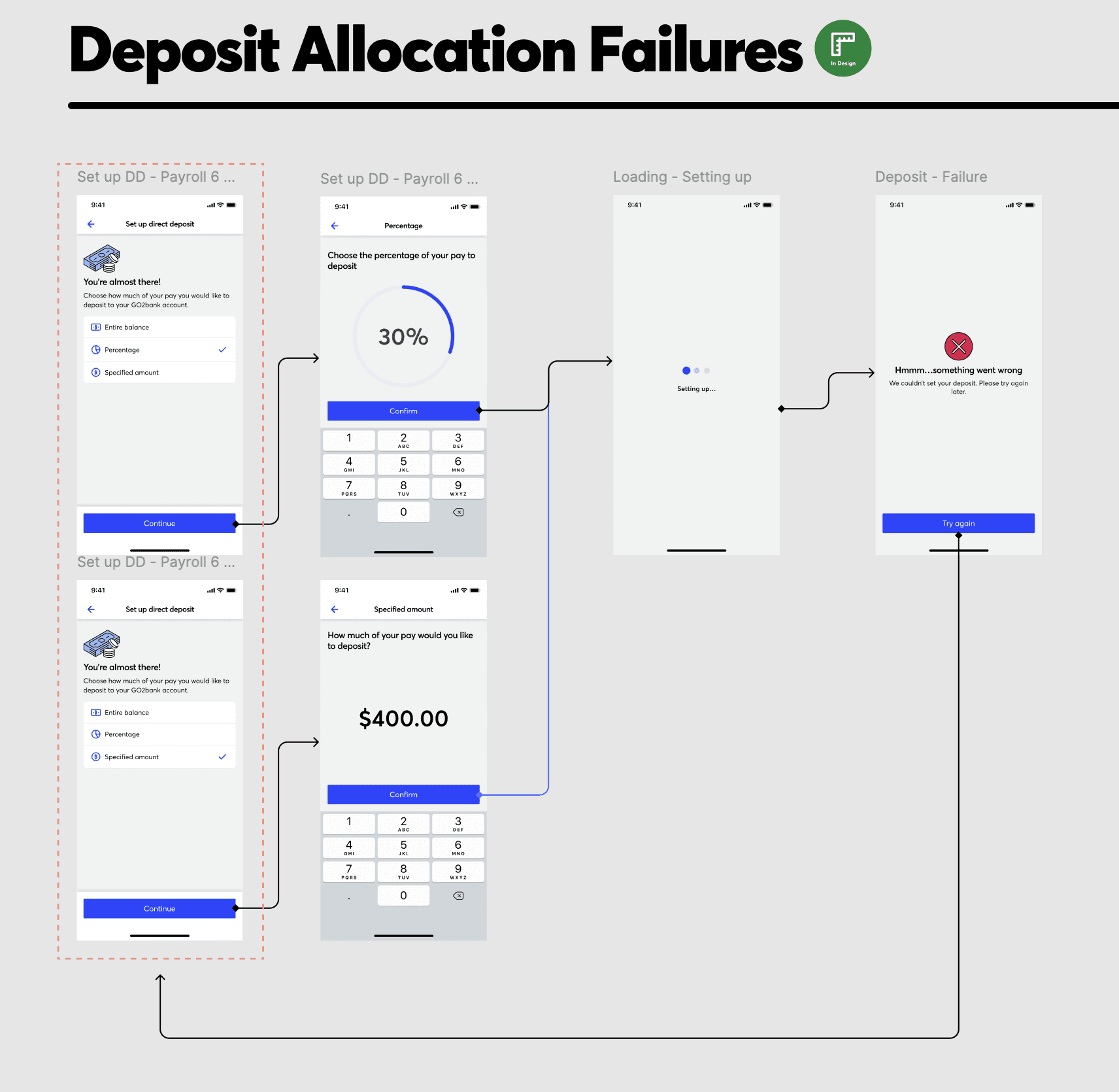 Direct deposit is a core feature that allows customers to receive paychecks and other earnings directly into their GO2bank account, eliminating the need for physical checks or in-branch visits. To support this experience, Green Dot partners with third-party platforms that help customers find their employers and securely connect payroll systems to their checking accounts. As GO2bank transitioned from Plaid to Atomic, I redesigned the direct deposit flow to support new technical requirements while ensuring customers could easily and confidently complete setup with minimal friction.