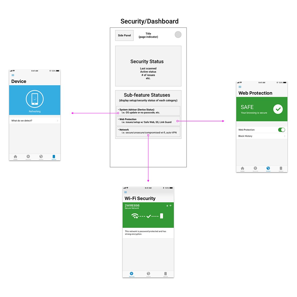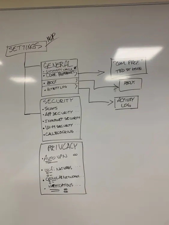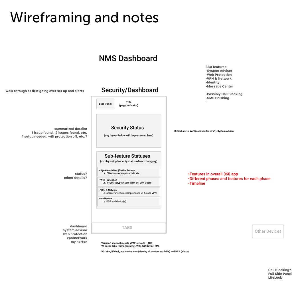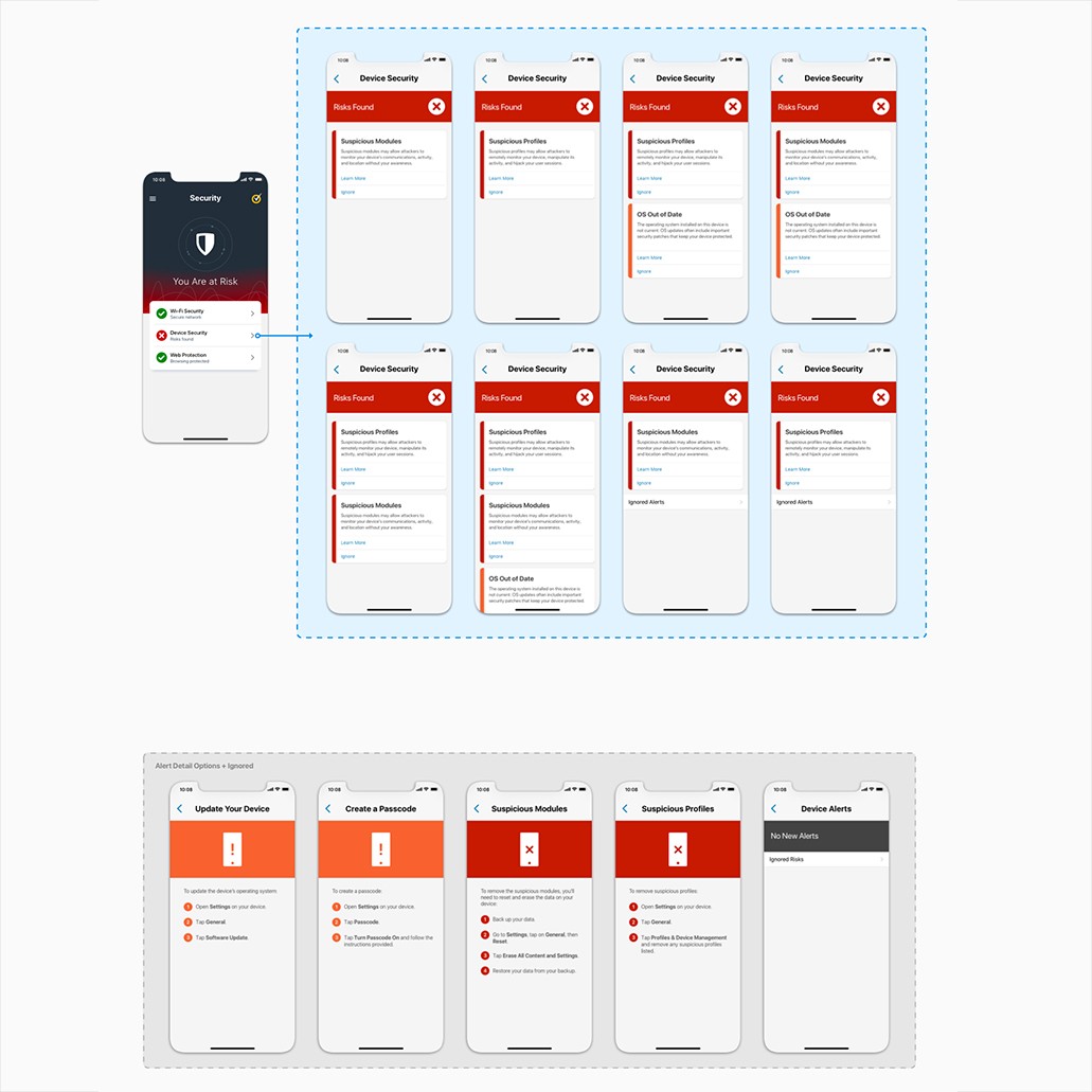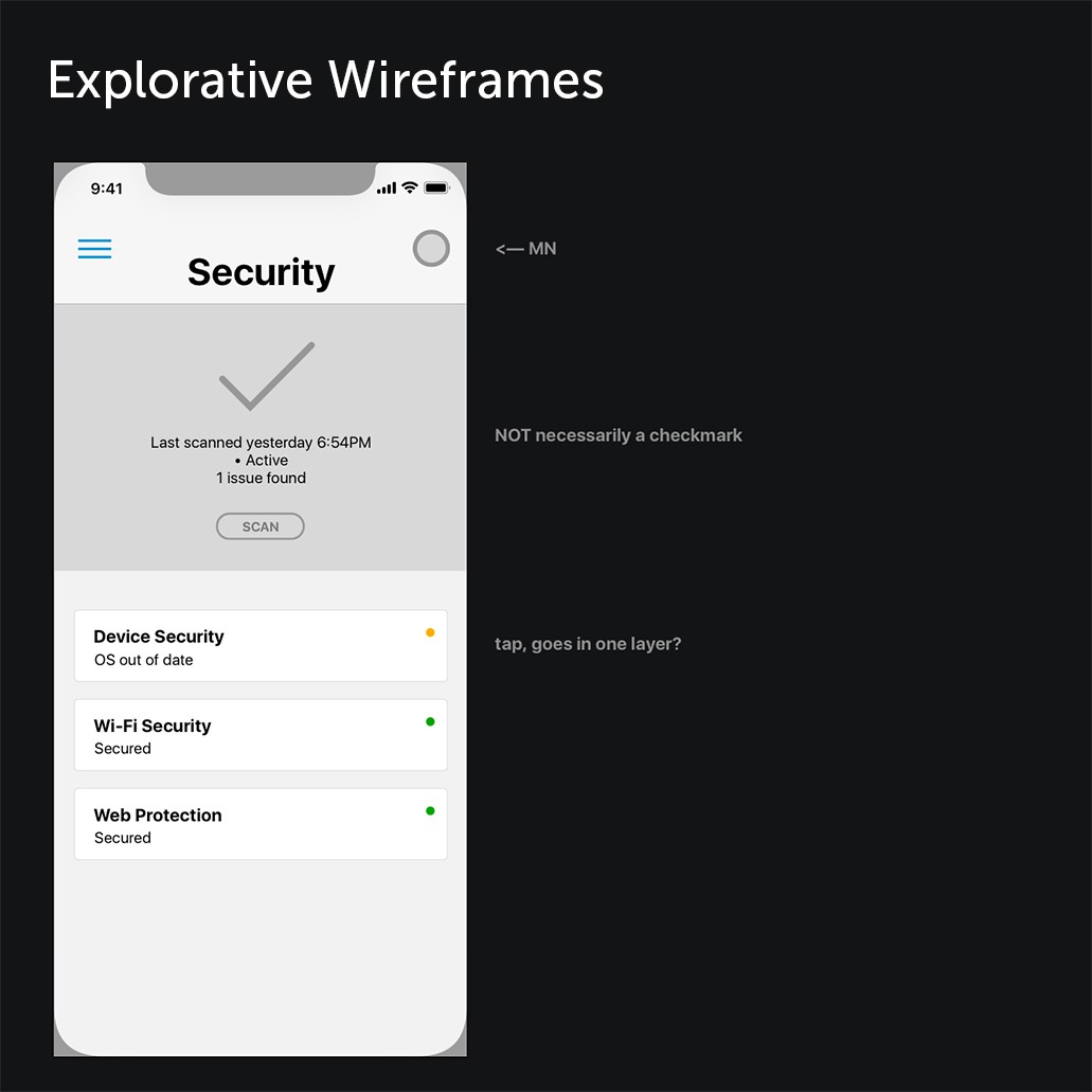 The design team took the initiative to kickstart the ideation process and facilitate discussions to resolve this constant user feedback. Without established requirements from project managers or developers, and with uncertainty lingering within the design team, we embarked our journey on wireframing, crafting user flows, and envisioning what we deemed to be the optimal security product (we decided this during discussions and brainstorming with gathered data).
