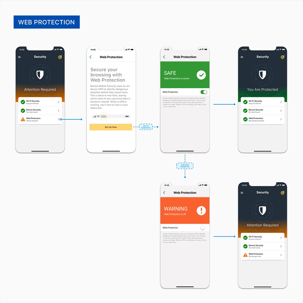 A few weeks after the initial rollout, I worked with product and design teams to review results, drawing insights from app analytics, customer feedback, and app store reviews. Users responded overwhelmingly positively, many noting the scope and impact of the improvements. These insights directly informed leadership’s decision to approve extending the update across the majority of Norton’s security features, reinforcing the value of a user-centered design approach.